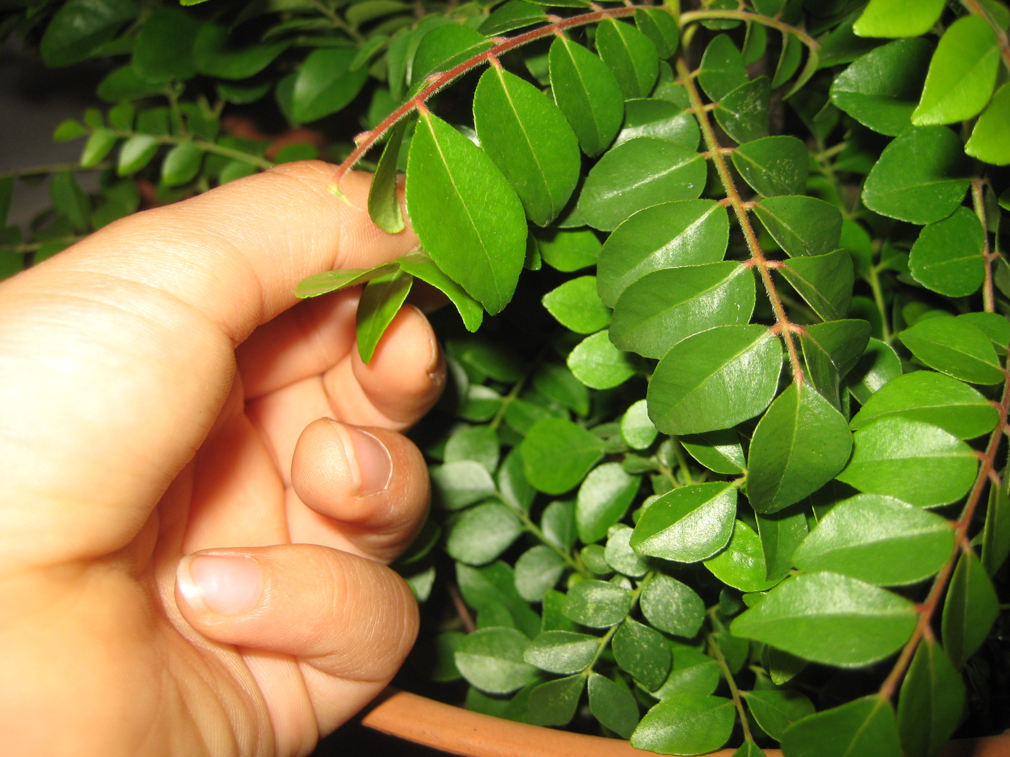 My wife keeps a curry plant to flavor her beautiful Indian cooking. Our boys have taken to snapping off the greenest leaves and eating them raw. Their chewing fills the air with a sharp, fresh scent. Yesterday, the plant was brought indoorsโ€”frostโ€”to spend the night on our low kitchen table. When the boys found it there this morning, they couldnโ€™t resist eating curry patta (leaves) with their oatmeal.