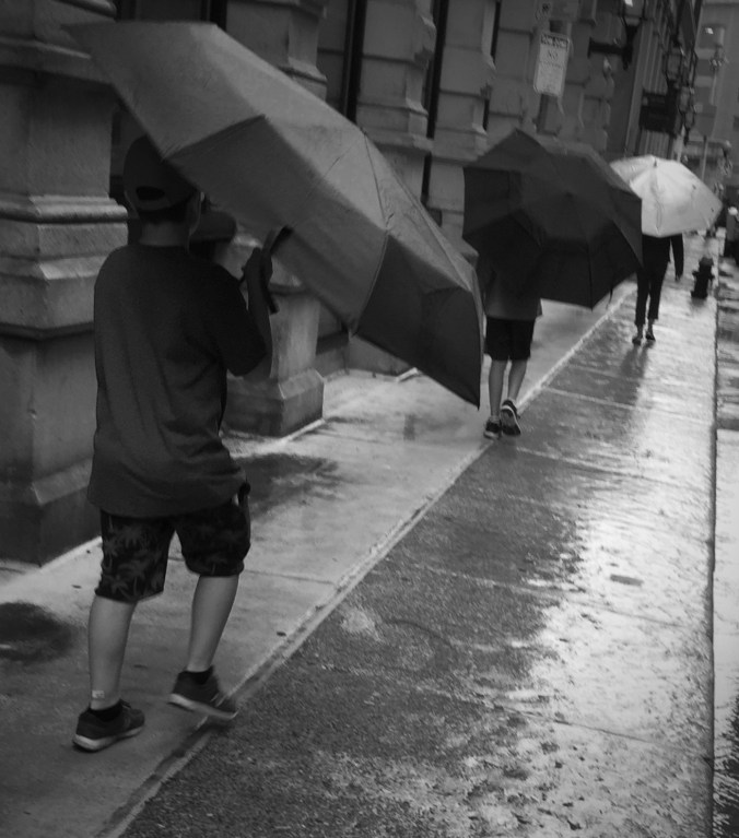 Until the sky rises again, light filters in, and the city is grey, wet, and clear.