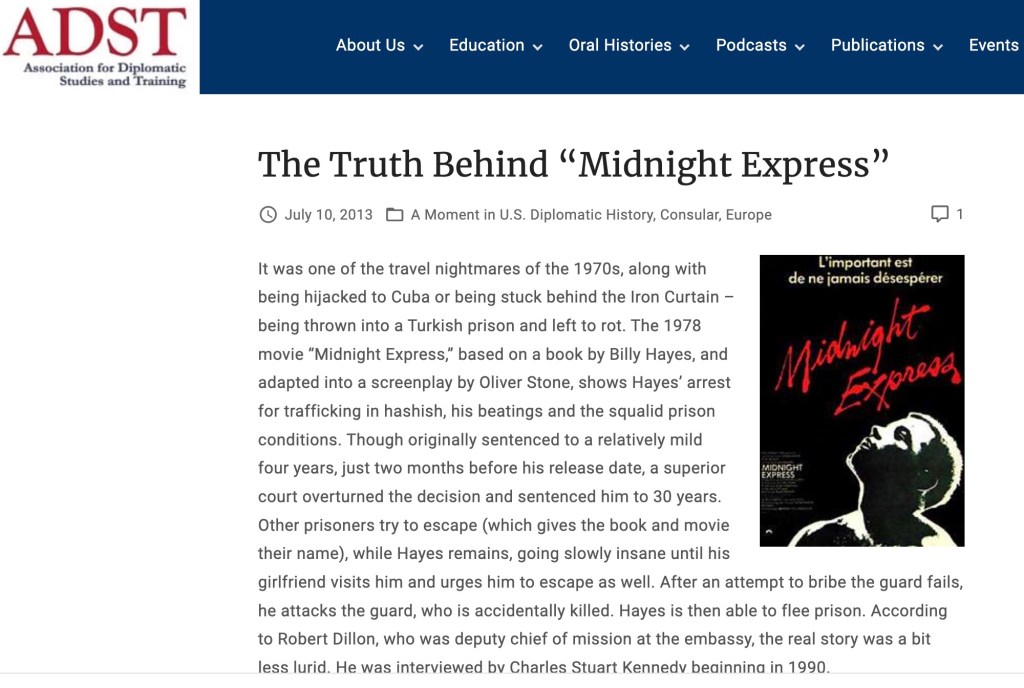 The outfit I write for is a wholesome enterprise dedicated to the study of U.S. diplomacy. In formal parlance: ‘Capturing, preserving, and sharing the experiences of America’s diplomats.’ This noble enterprise, the Association for Diplomatic Studies & Training, has accumulated 2500 oral histories since its founding in 1986. They also produce podcasts, publications, and educational materials suited for the classroom.