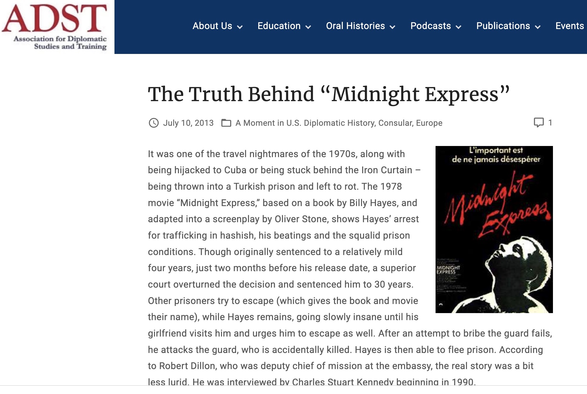 The outfit I write for is a wholesome enterprise dedicated to the study of U.S. diplomacy. In formal parlance: ‘Capturing, preserving, and sharing the experiences of America’s diplomats.’ This noble enterprise, the Association for Diplomatic Studies & Training, has accumulated 2500 oral histories since its founding in 1986. They also produce podcasts, publications, and educational materials suited for the classroom.