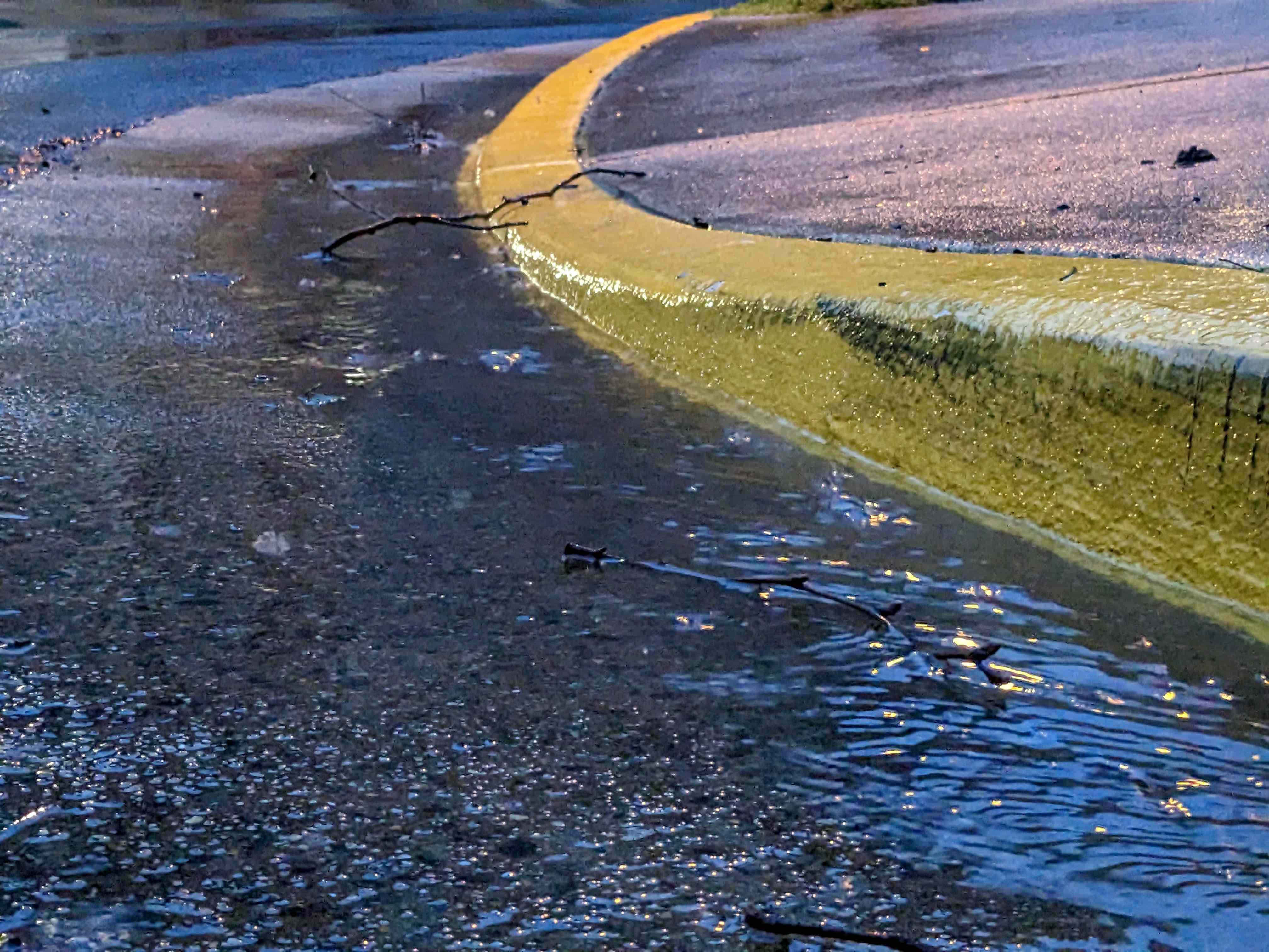 I walk slow and careful through the dark rainy morning to keep my socks dry.