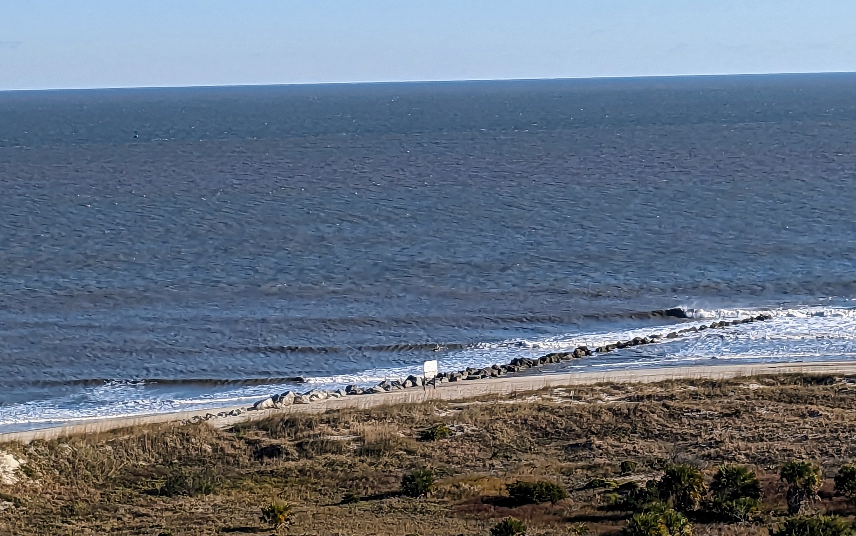 From the lighthouse we could see today’s break at the north jetty. The waves broke small, but clean.