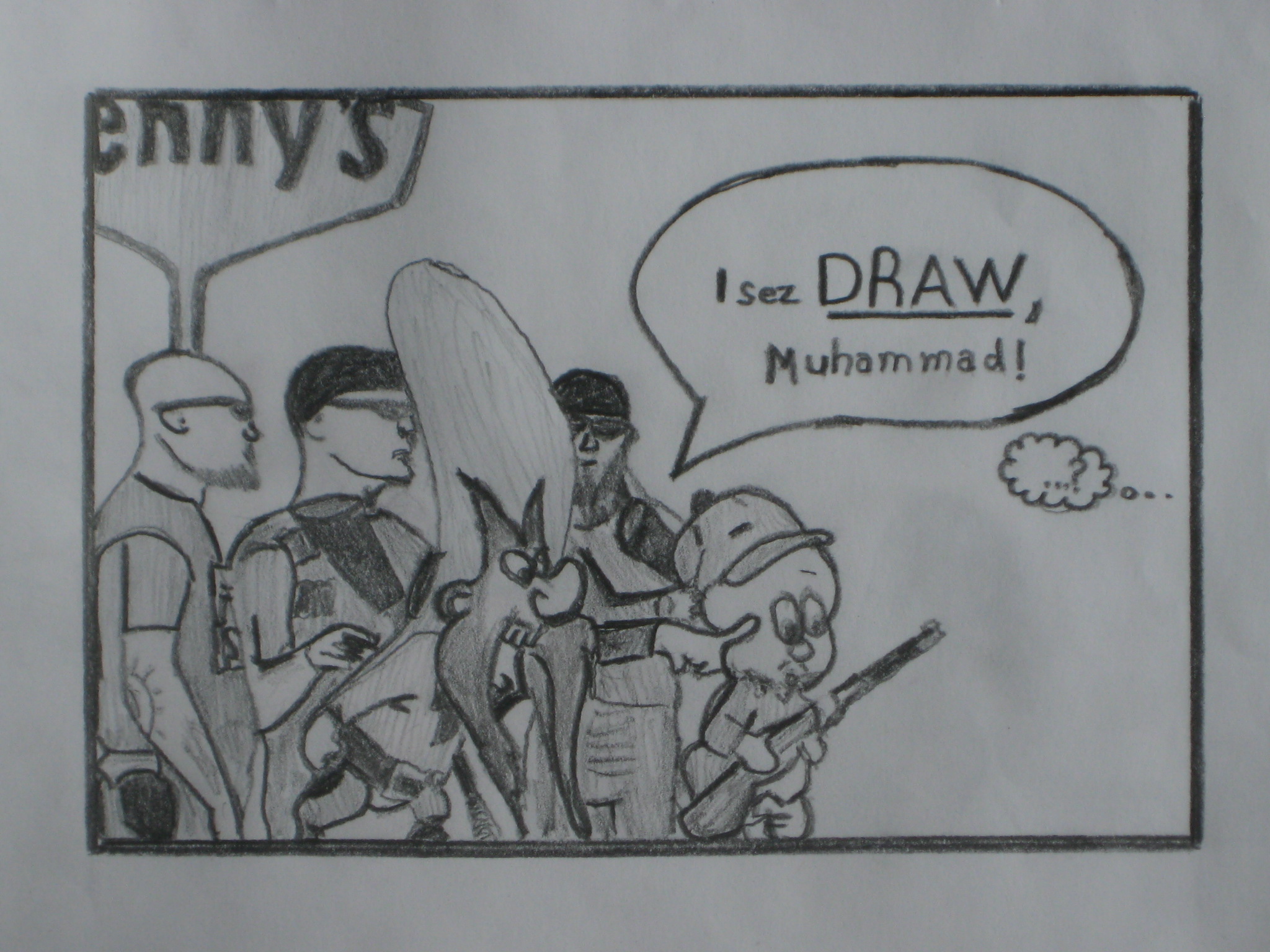 I’ve grown obsessed with the idea of Muhammad cartoon contests. I like it that even the cartoon characters who promote these provocations have called the concept “stupid and ridiculous“. Well, as a fan of the ridiculous, here’s my attempt to host a cartoon contest of my own. Announcing the first ever:
